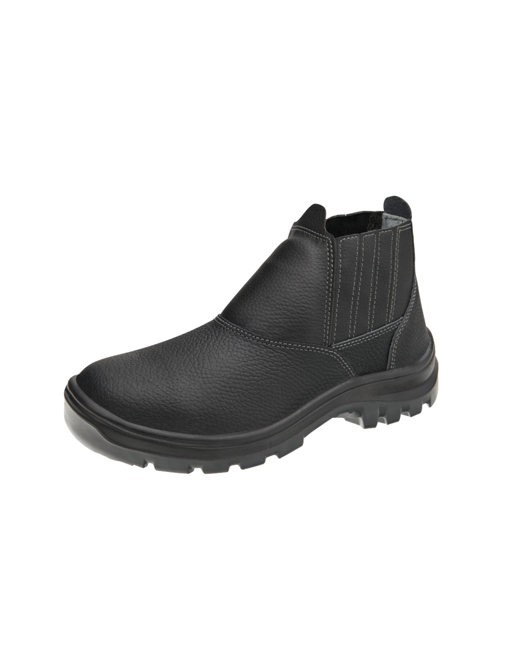 Bota em couro relax na cor preta, ideal para trabalhadores das áreas de produção, serviços gerais e prestadores de serviço. Esta Vulcaflex tem biqueira de plástico, dorso acolchoado, abas para facilitar o calce, e fechamento em elástico nas laterais. O solado em PU bidensidade tem sistema de absorção de impacto, sendo injetado diretamente no cabedal e palmilha de montagem em EVA. Este sapato conta com a certificação IBTeC de conforto.