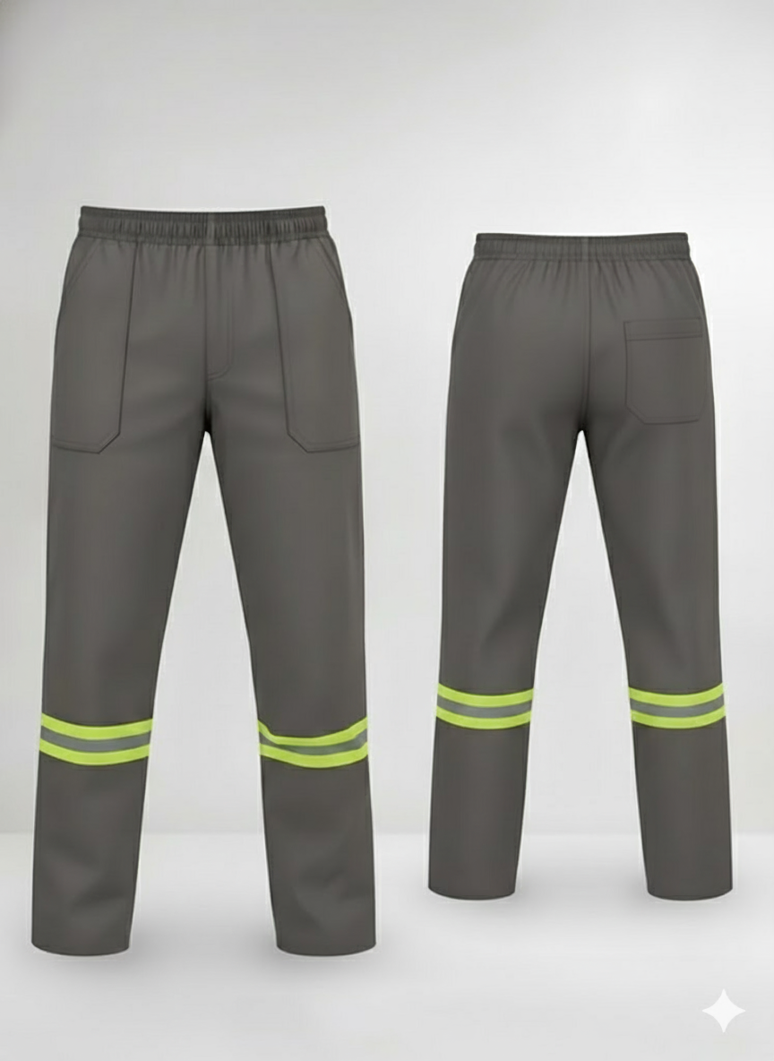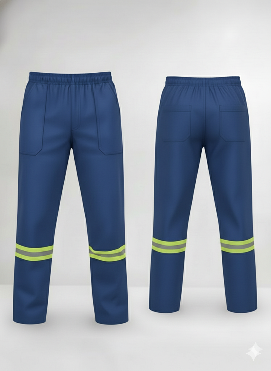 Calça de brim com faixa refletiva, confeccionada em tecido resistente e confortável, ideal para uso profissional, garantindo segurança, durabilidade e boa apresentação no dia a dia. Disponível com diversas opções de faixas refletivas, adaptáveis às necessidades de cada atividade, além de personalização com a sua marca, valorizando a identidade visual da empresa.