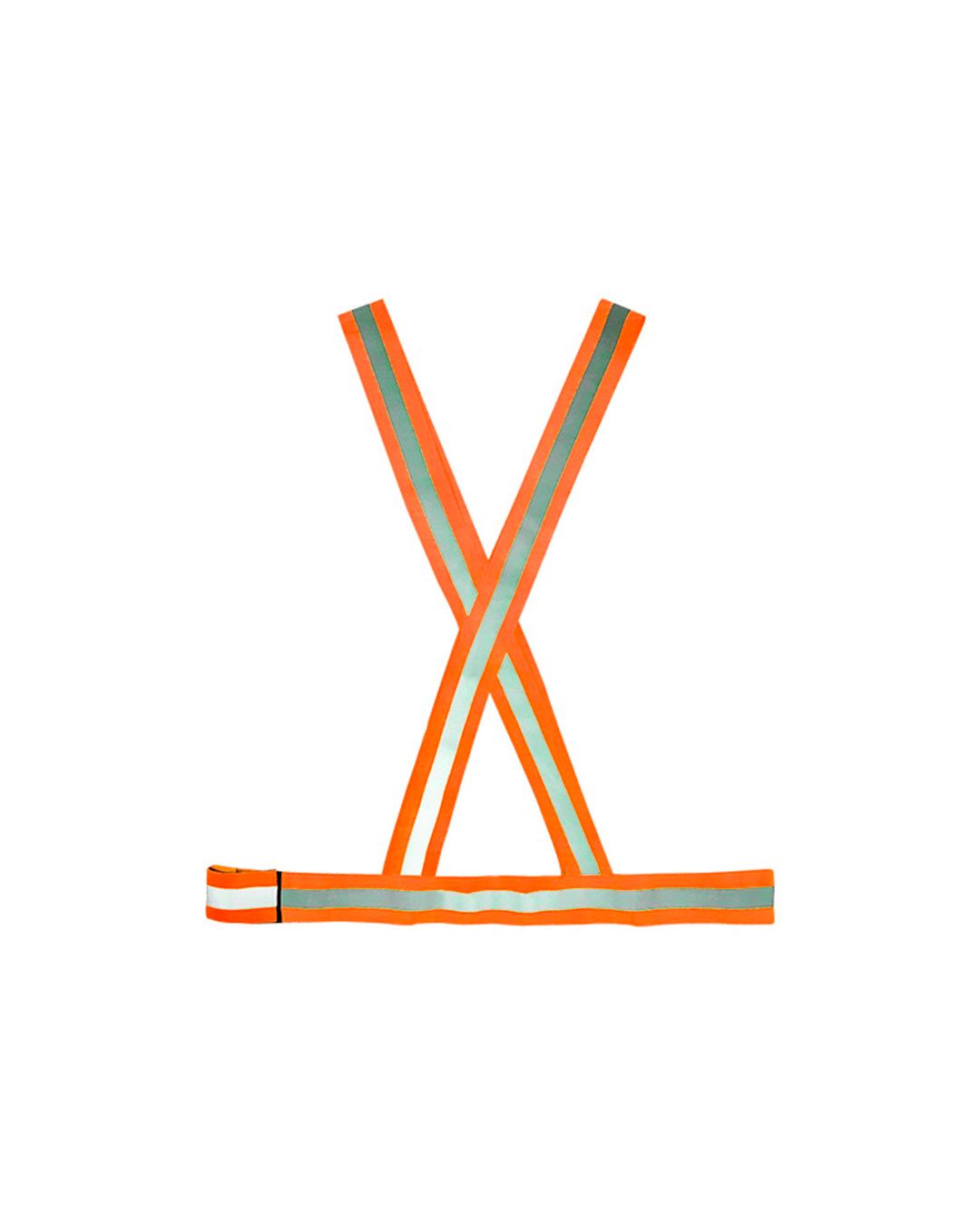 Colete de sinalização refletivo tipo X é confeccionado em PVC fluorescente na cor laranja. Utilizado para garantir maior visibilidade ao usuário em serviços onde haja grande fluxo de veículos ou outros maquinários.