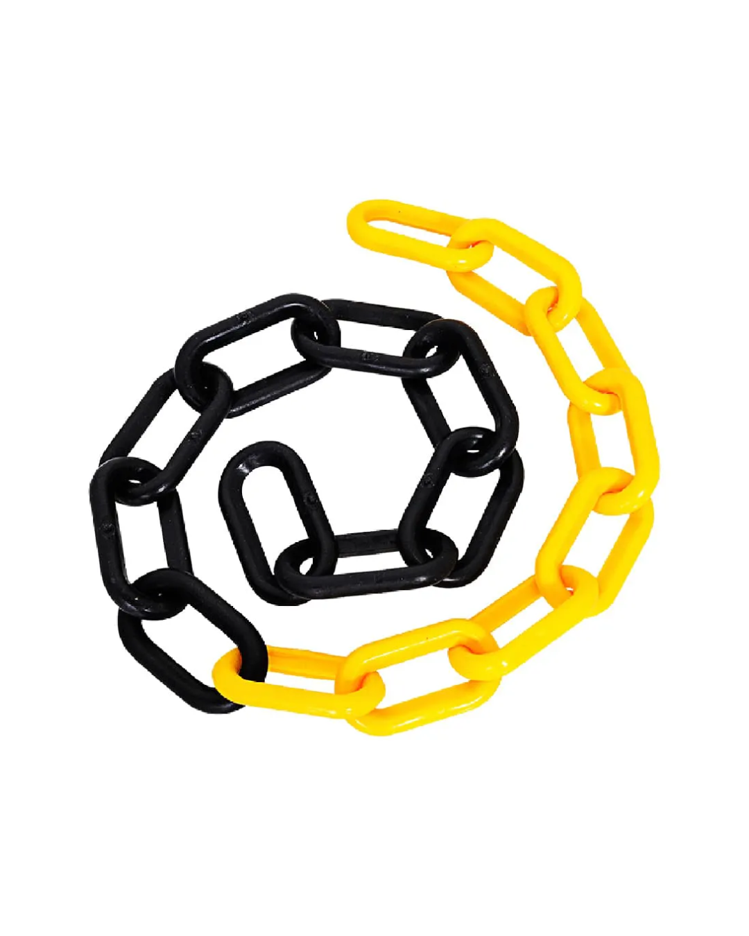 Corrente plástica para pedestal injetado em polietileno de alta desidade nas cores amarelo e preto. Utilizado para sinalização em geral e escoamento da água em calhas.