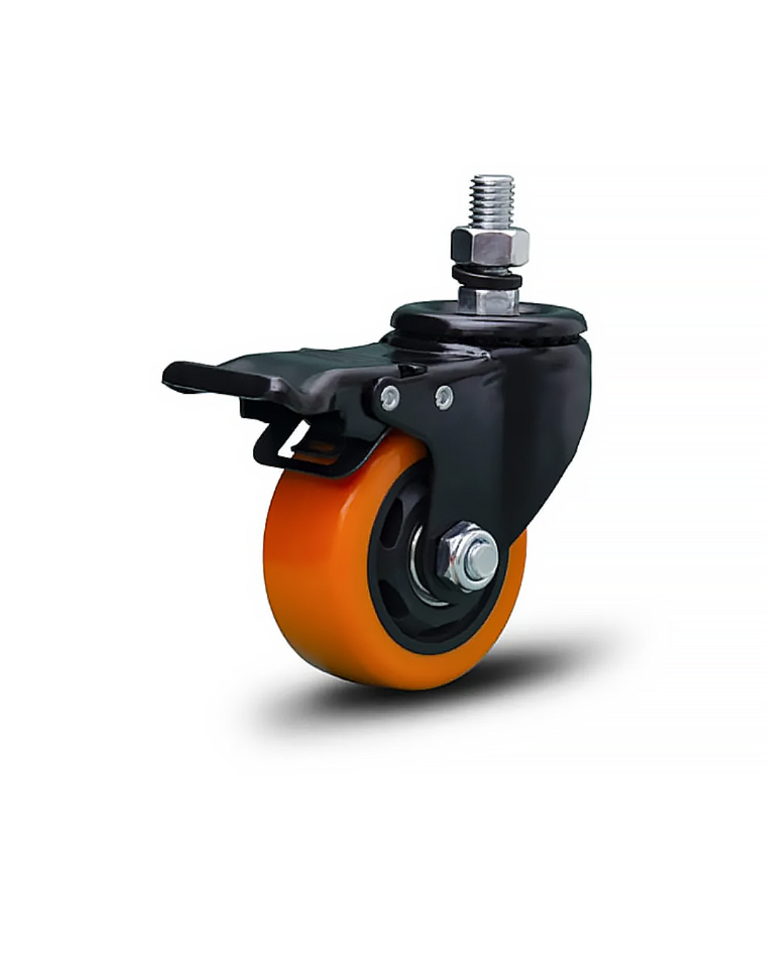 Rodízio giratório com base em chapa de aço zincado,Indicada para pisos em bom estado de conservação. Disponível com e sem freio.