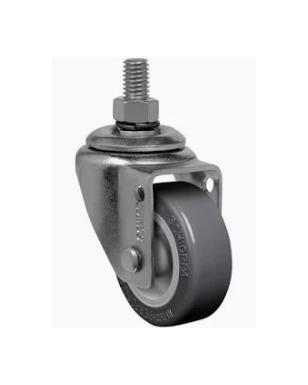 Rodízio giratório com base em chapa de aço zincado,Indicada para pisos em bom estado de conservação. Disponível com e sem freio.