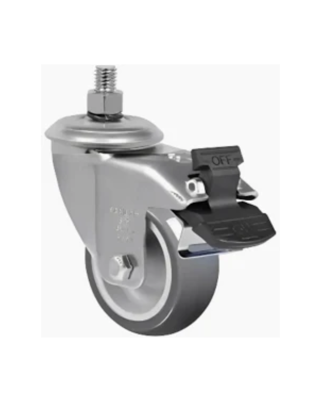 Rodízio giratório com base em chapa de aço zincado,Indicada para pisos em bom estado de conservação.