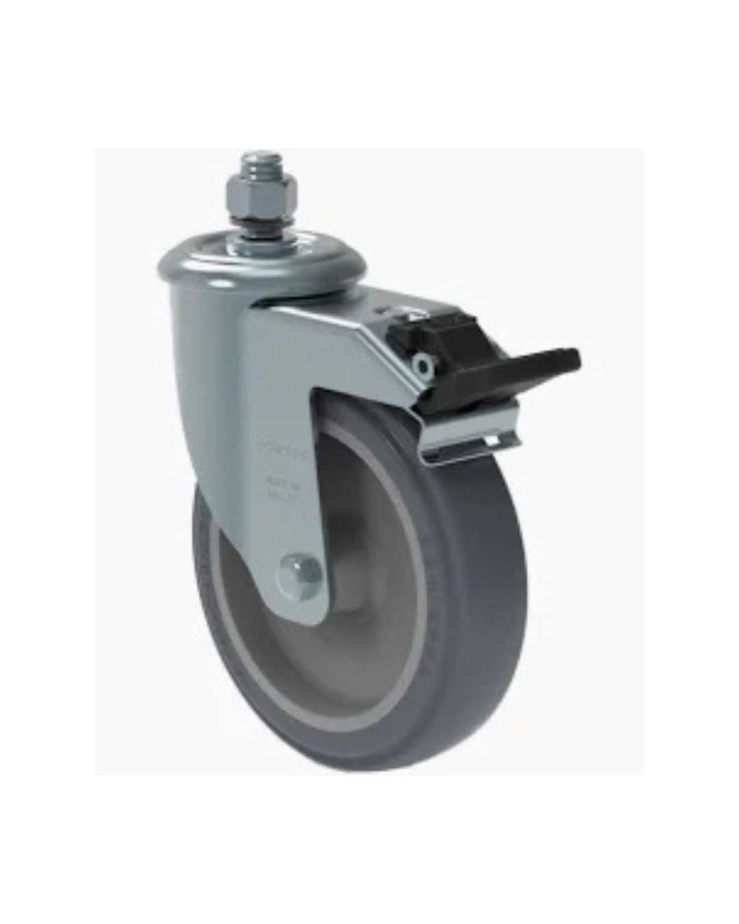 Rodízio giratório com base em chapa de aço zincado,Indicada para pisos em bom estado de conservação. Disponível com e sem freio.